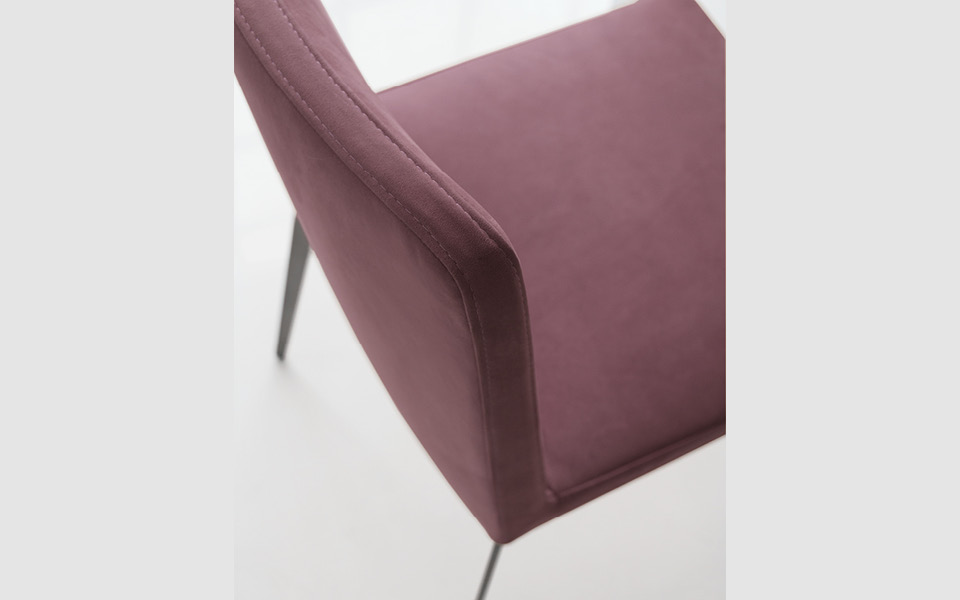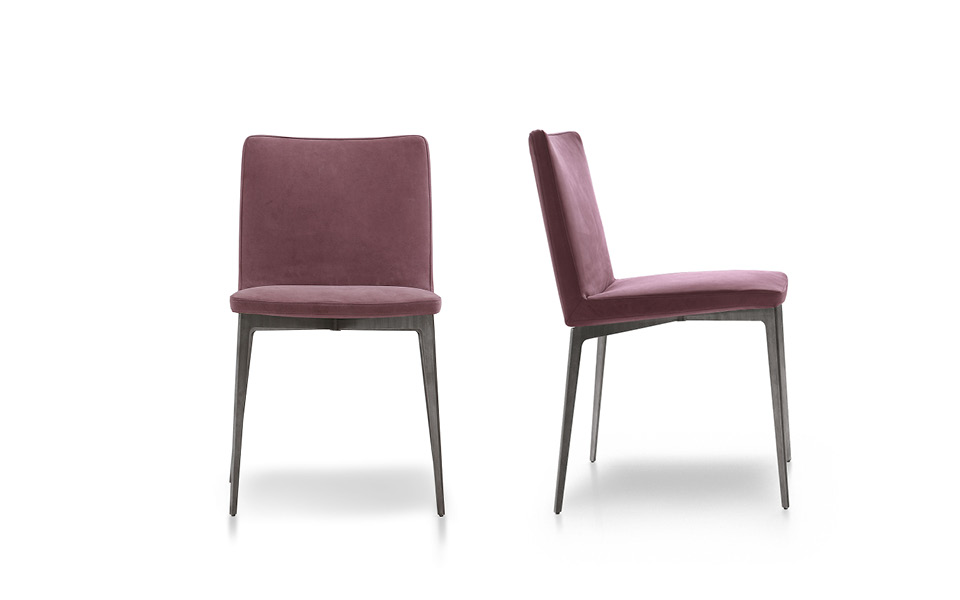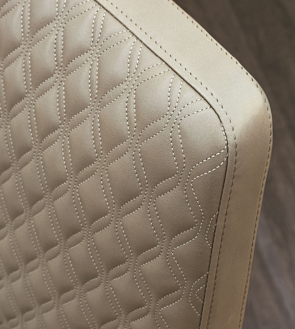 Structure en métal revêtue en mousse de polyuréthane flexible à froid avec une couche de mousse Memory et Dacron. Revêtement en tissu, peau ou peau matelassé. Pieds en acier chromé ou laqué.