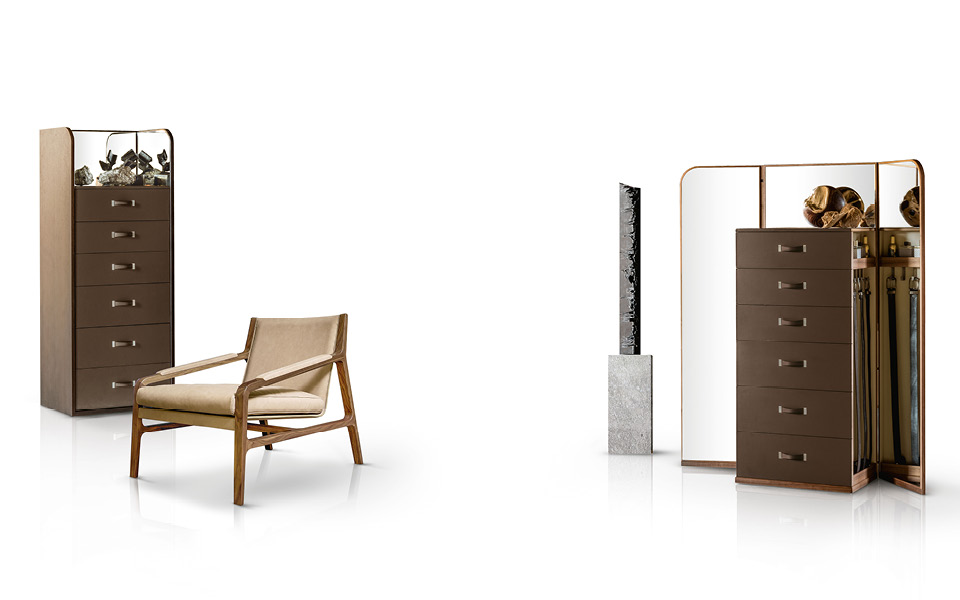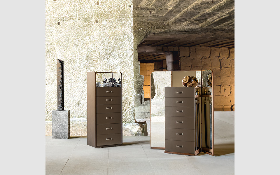 Un meuble parfait pour ranger tout ce qu'une chambre à coucher peut renfermer et qui, quand on l'ouvre, dévoile non seulement le contenu, mais aussi toutes ses fonctionnalités : commode, coiffeuse et porte-objets. Giano est un meuble qui regarde le passé et actualise le style.