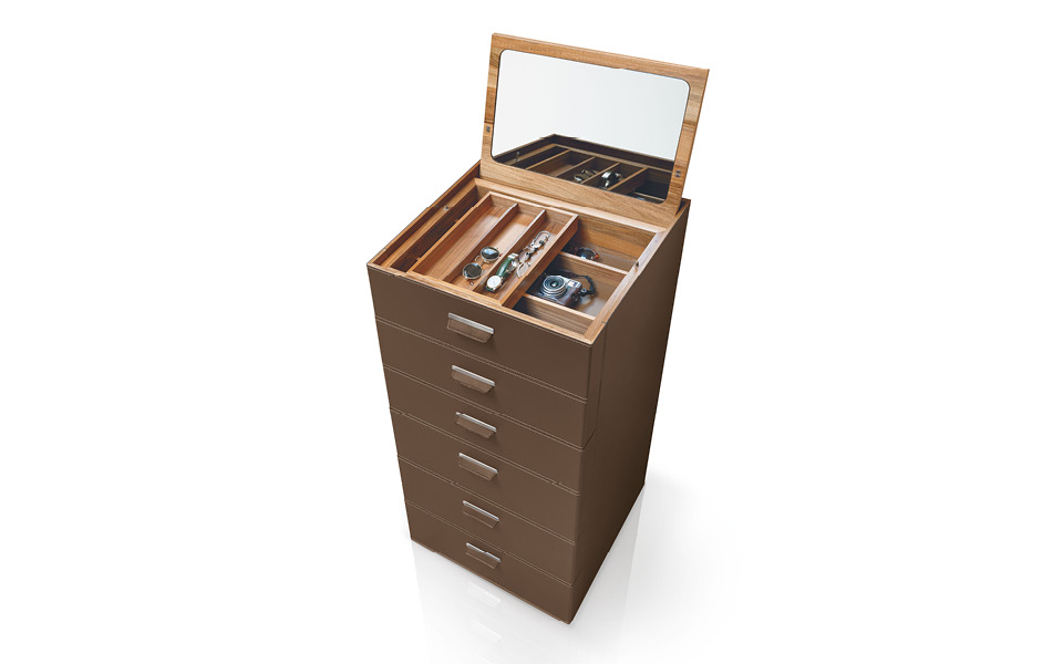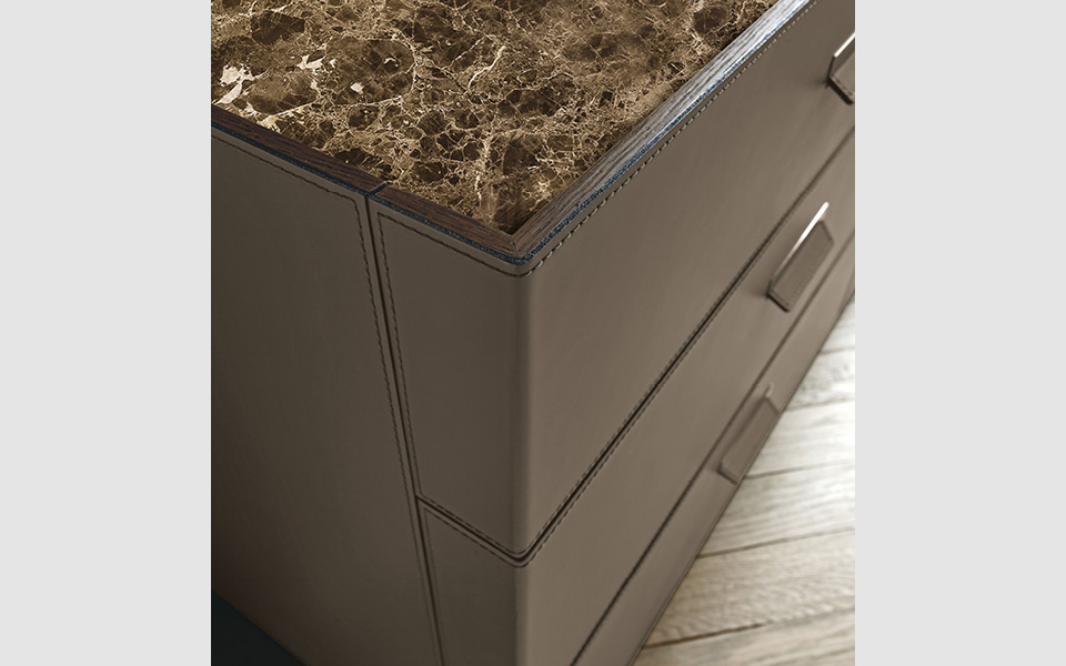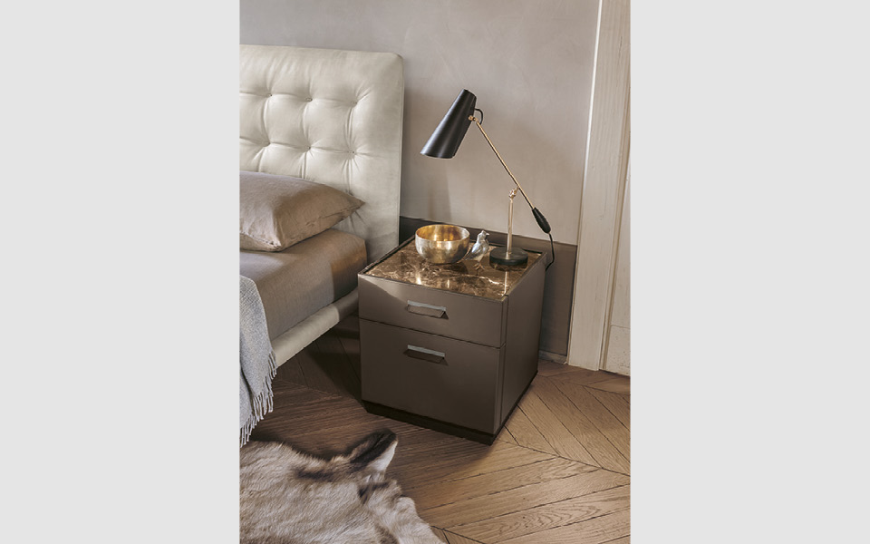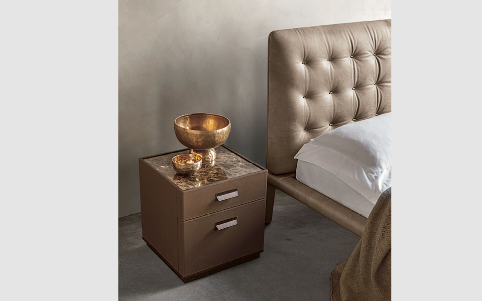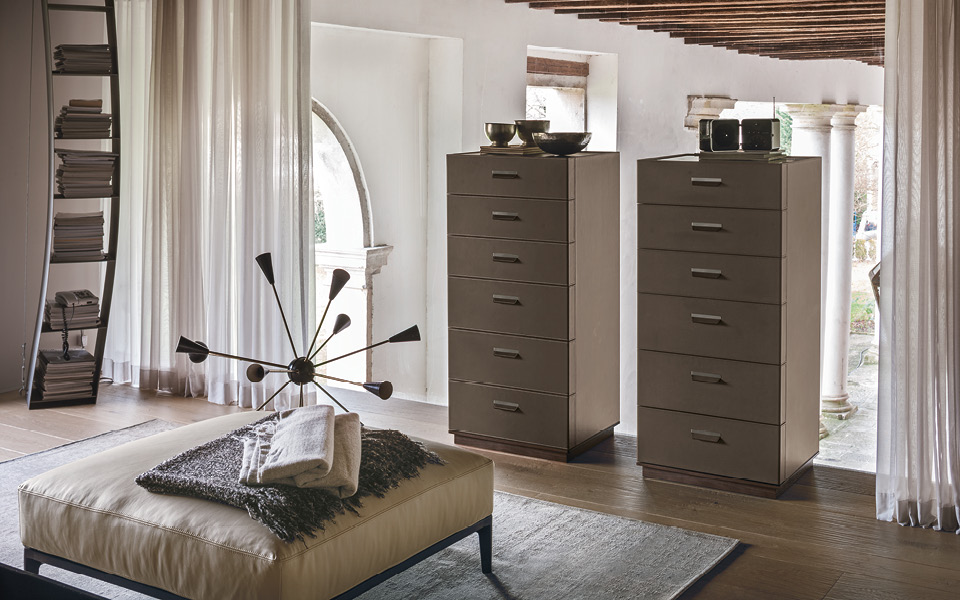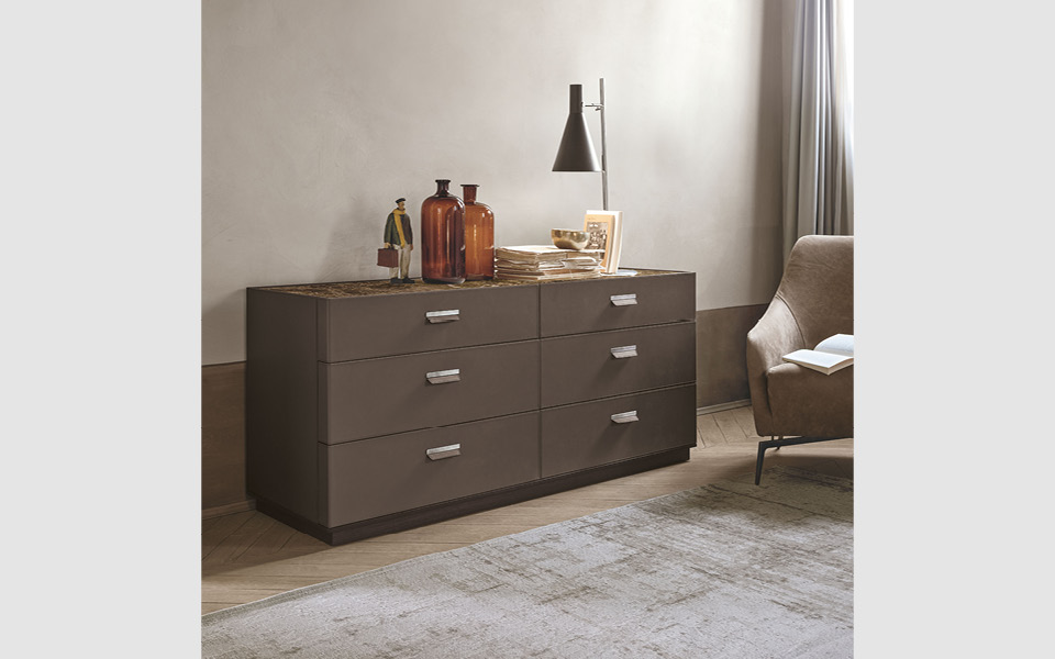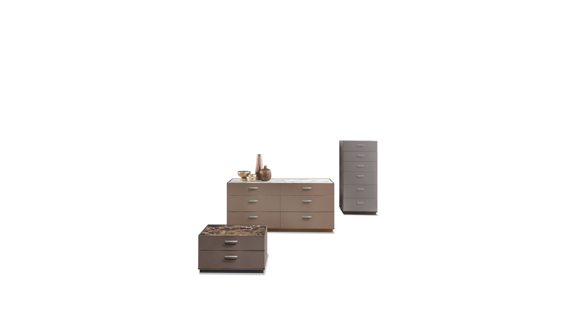 Skin est la ligne conçue pour élargir l'offre pour la chambre composée de commodes, chiffonniers, coiffeuses et tables de nuit. Les éléments de la collection se distinguent pour la richesse des matériaux et la précision des réalisations qui expriment pleinement les valeurs du Made in Italy.